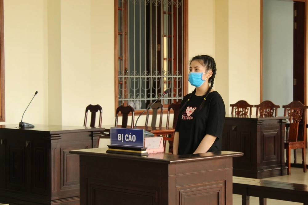 Bị cáo Lê Thị Kim Chi tại tòa ngày 17-4. Ảnh: NHẪN NAM