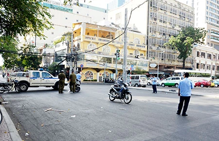 Hiện trường xảy ra hỗn chiến ở quận 1, TP.HCM khiến một người thiệt mạng. Ảnh: XN