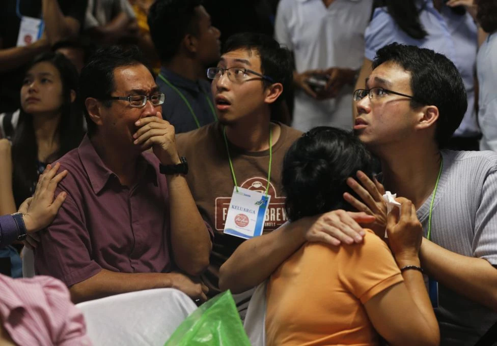 Các gia đình nạn nhân trong chuyến bay QZ8501 la khóc, ngất xỉu tại sân bay quốc tế Juanda ở Surabaya (Indonesia) khi hay tin máy bay rơi xuống biển. Ảnh Reuters.