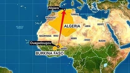 Máy bay AH5017 cất cánh lúc 1 giờ 55 sáng 24-7 (giờ địa phương) từ sân bay ở thủ đô Ouagadougou của Burkina Faso (Tây Phi). 50 phút sau, máy bay mất liên lạc trên đường bay đến thủ đô Algiers (Algeria). Đúng ra ba tiếng sau khi khởi hành máy bay sẽ bay đến Algiers.