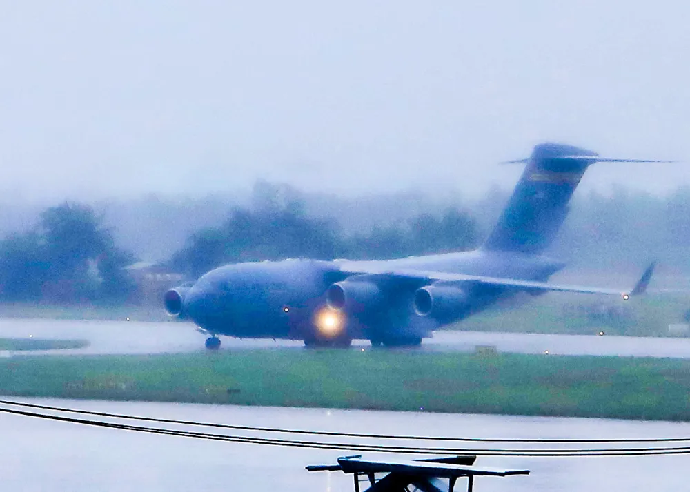 Boeing C17 Globemaster III lăn bánh trên đường băng Đà Nẵng. Ảnh: PHẠM HUY