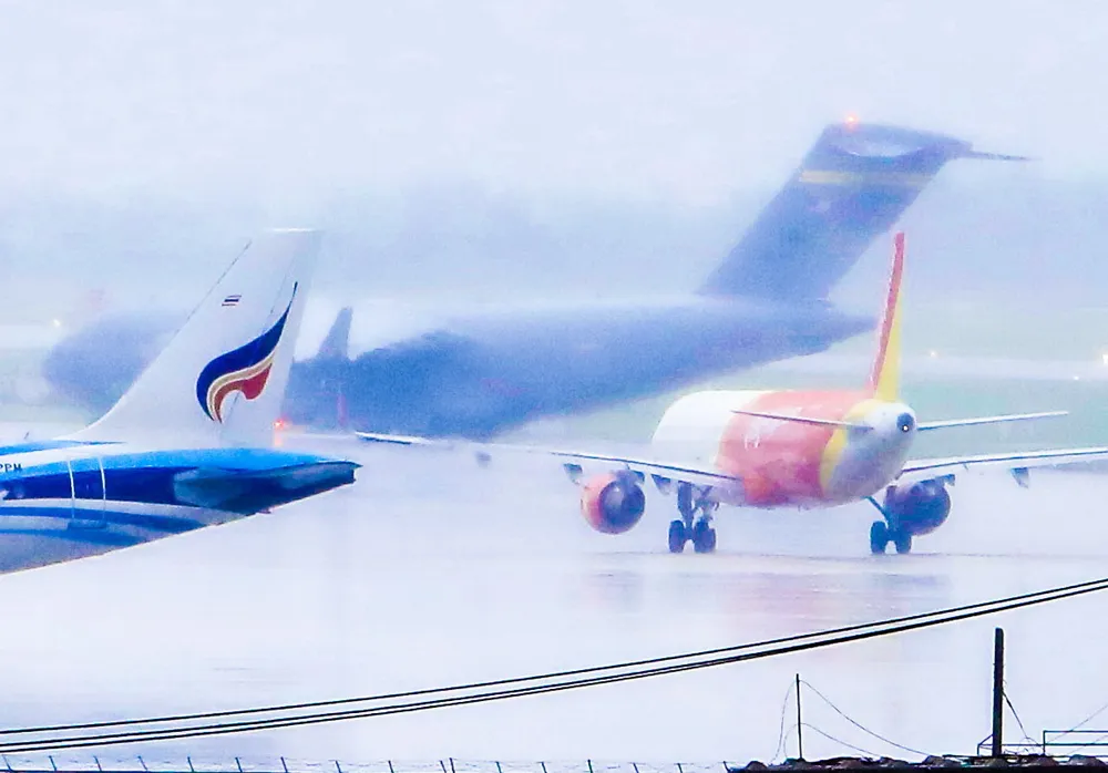 Khu vực bãi đáp của sân bay quốc tế Đà Nẵng trước khi C17 xuống. Ảnh: LÊ PHI