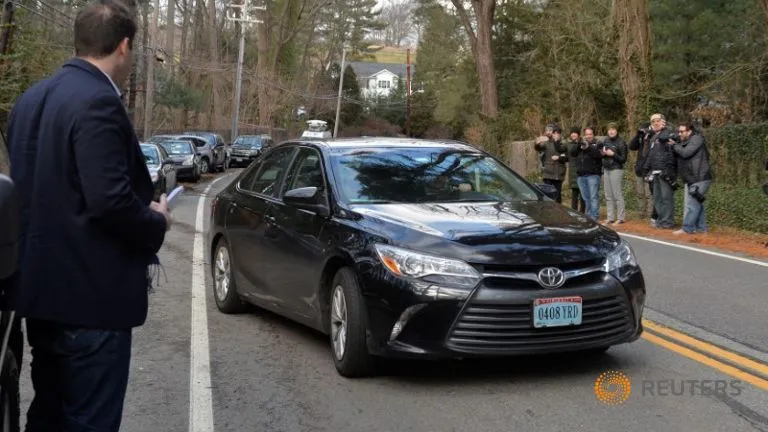 Chiếc xe với biển số xe ngoại giao rời khu nhà của Nga ở Upper Brookville, Long Island, New York vào ngày 30-12-2016. Ảnh: REUTERS