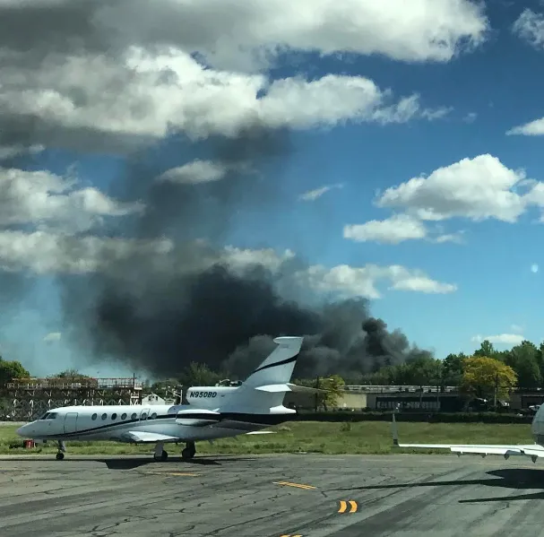 Sân bay Teterboro nằm cách phía Tây TP New York chưa tới 15 km. Vụ tai nạn xảy ra tại một khu công nghiệp cách sân bay khoảng 500 m, gây ra một đám cháy lớn và khói đen dày đặc.
