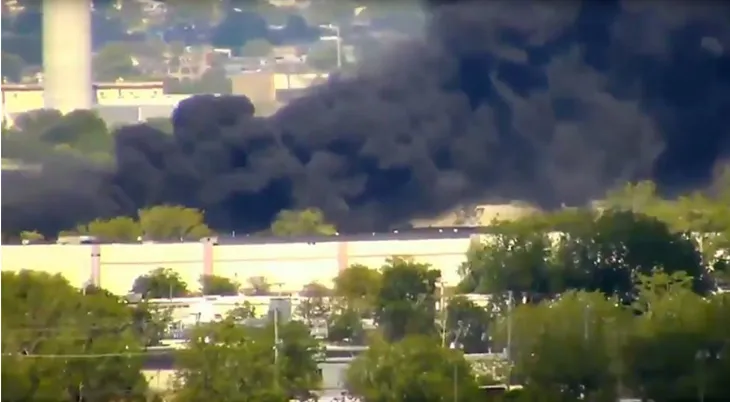 Vụ tai nạn gây ra một đám cháy lớn, khói đen bốc lên dày đặc. Ảnh: REUTERS