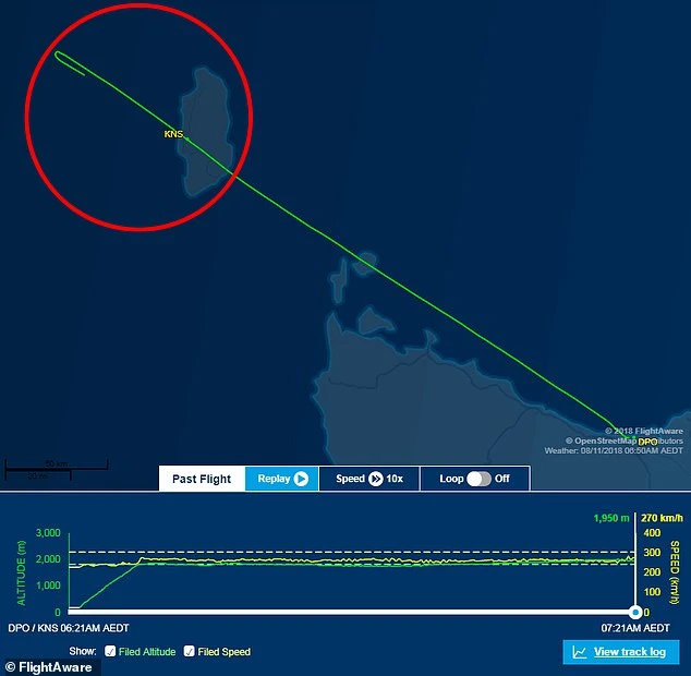 Dữ liệu theo dõi chuyến bay cho thấy chiếc máy bay loại Piper PA-31 Navajo VH-TWU của hãng hàng không Vortex Air (Úc) đã hạ cánh an toàn tại sân bay đảo King sau khi đi quá 46 km và phải quay đầu.