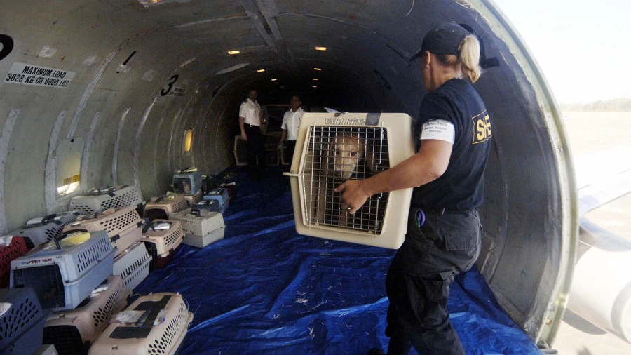 Các con thú cưng khi được vận chuyển đường hàng không được cho vào những chiếc chuồng và đặt chung trong khoang hành lý. Ảnh: AFP