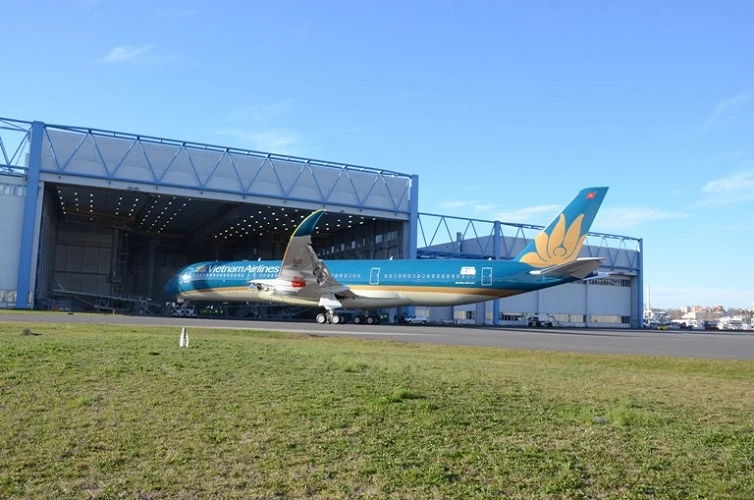 Những hình ảnh đẩu tiên về máy bay A350 hiện đại nhất của Vietnam Airlines tại xưởng sơn của hãng Airbus (Pháp)