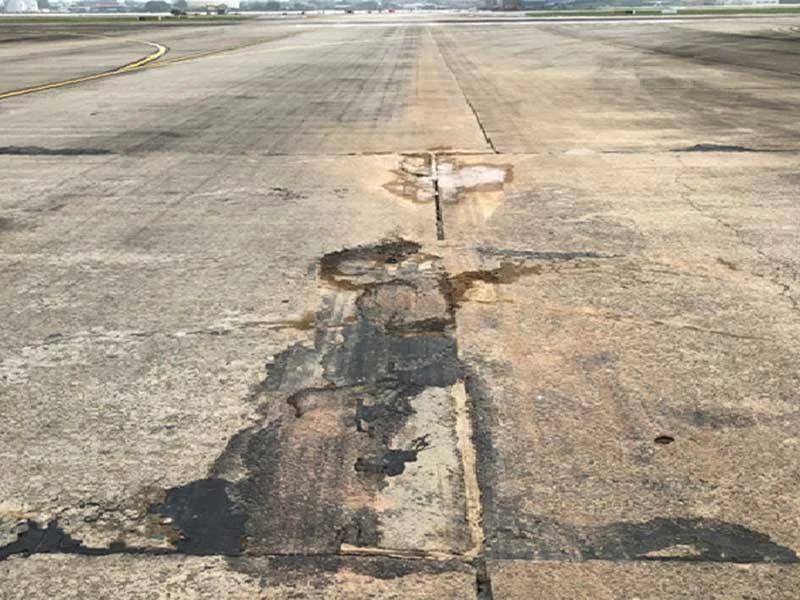 Đường lăn sân bay Nội Bài bị xuống cấp đang được khắc phục. Ảnh: CTV