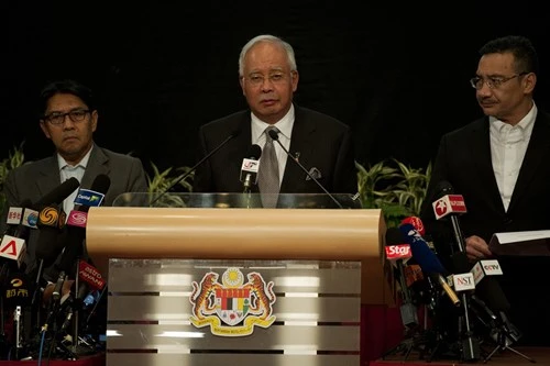 Thủ tướng Malaysia trong buổi họp báo lúc 21 giờ (giờ VN) đêm qua. Ảnh: Mirror