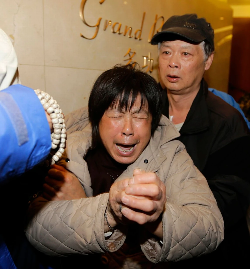 Họ gào thét, kêu khóc, ngã quỵ và nhiều người tỏ ra mất kiểm soát khi nghe thông tin từ cuộc họp báo tối ngày thứ hai của thủ tướng Malaysia , công bố thông tin máy bay đã rơi ở Ấn Độ Dương và không một ai sống sót.
