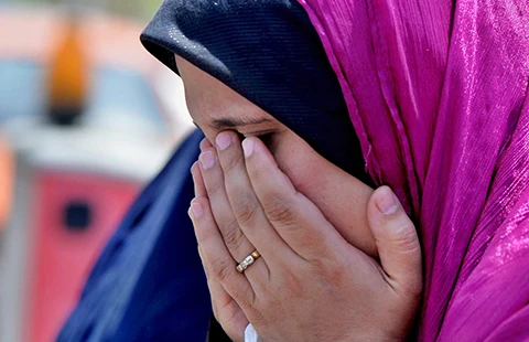 Gia đình hành khách đau buồn chờ đợi thông tin tại sân bay Cairo (Ai Cập). Ảnh: GETTY IMAGES