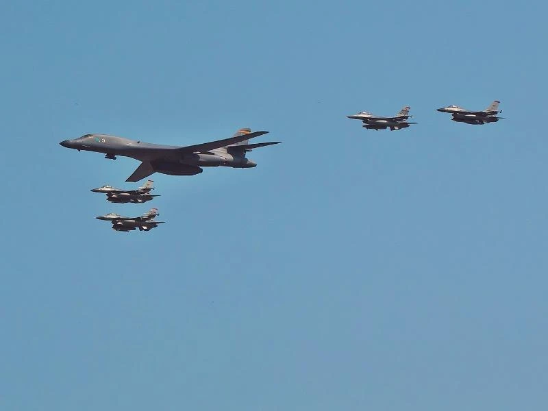 Hội đồng tham mưu trưởng liên quân Hàn Quốc (JCS) trong một thông cáo ngày 11-10 cho hay: Hai máy bay ném bom hạt nhân B-1B Mỹ đã được hộ tống bởi hai chiến đấu cơ F-15K của Hàn Quốc trên bán đảo Triều Tiên tối 10-10. Các chiếc B-1B bay đến từ căn cứ không quân ở đảo Guam, theo Reuters.