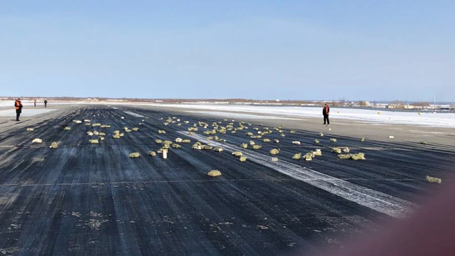 Theo hãng tin RT, hình ảnh lan truyền trên mạng xã hội cho thấy những thỏi vàng nằm vương vãi khắp đường băng sân bay Yakutsk, ở Yakutia, vùng Viễn Đông nước Nga. Sự cố xảy ra khi chiếc máy bay chở hàng An-12 của hãng hàng không Nimbus bị bung cửa khoang hành lý trong khi cất cánh.