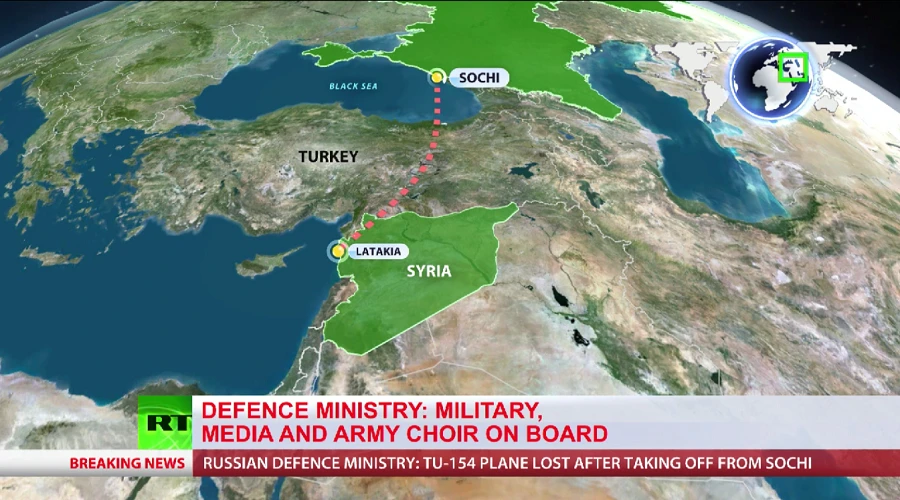Theo RT, chiếc máy bay vận tải quân sự Tu-154 lúc đó chở 92 người, gồm 84 hành khách và 8 thành viên tổ bay. Chiếc máy bay đã biến mất khỏi màn hình radar khi đang trên biển Đen vào khoảng tầm 20 phút sau khi nạp liệu và cất cánh từ sân bay Adler ở thành phố Sochi, miền nam Nga lúc 5 giờ 20 sáng 5-12 (9 giờ 20 giờ VN).
