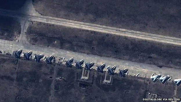 Trong khi đó, hàng chục ngàn binh sĩ Nga đang tập trung ở khu vực biên giới giữa hai nước, sẵn sàng hành động theo diễn biến tại Moscow. Hành động này được Bộ trưởng Quốc phòng Mỹ Chuck Hagel đánh giá là cố ý gây biến động và có tính chất khiêu khích nguy hiểm.