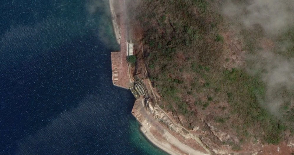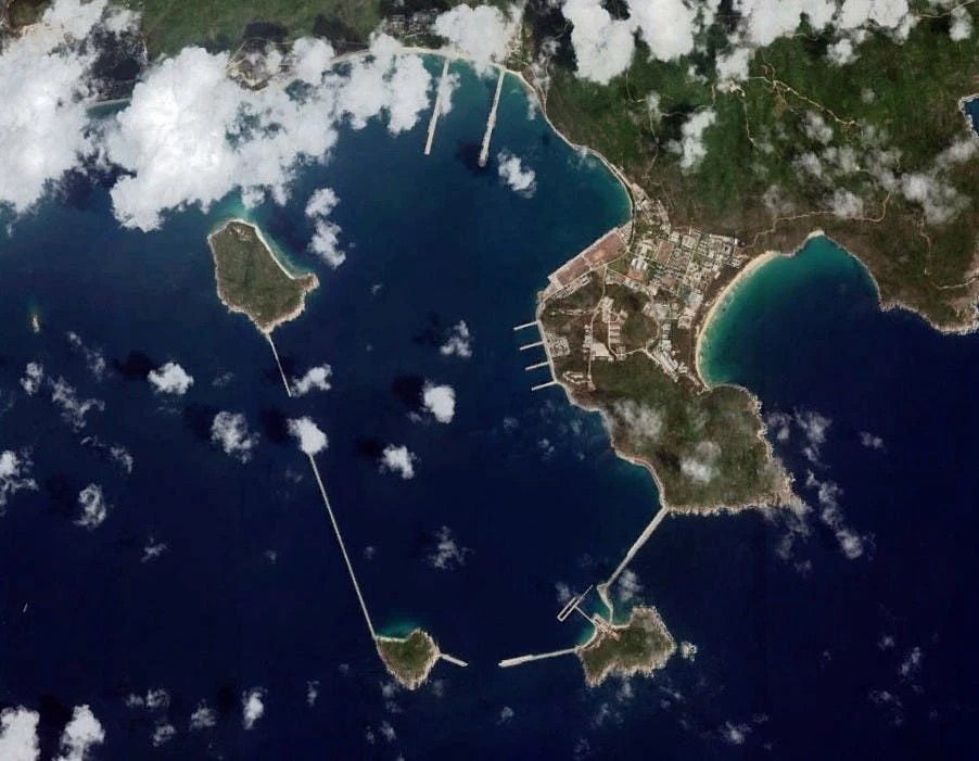 Hình ảnh vệ tinh chụp căn cứ hải quân Du Lâm ngày 3-3. Ảnh: GOOGLE EARTH
