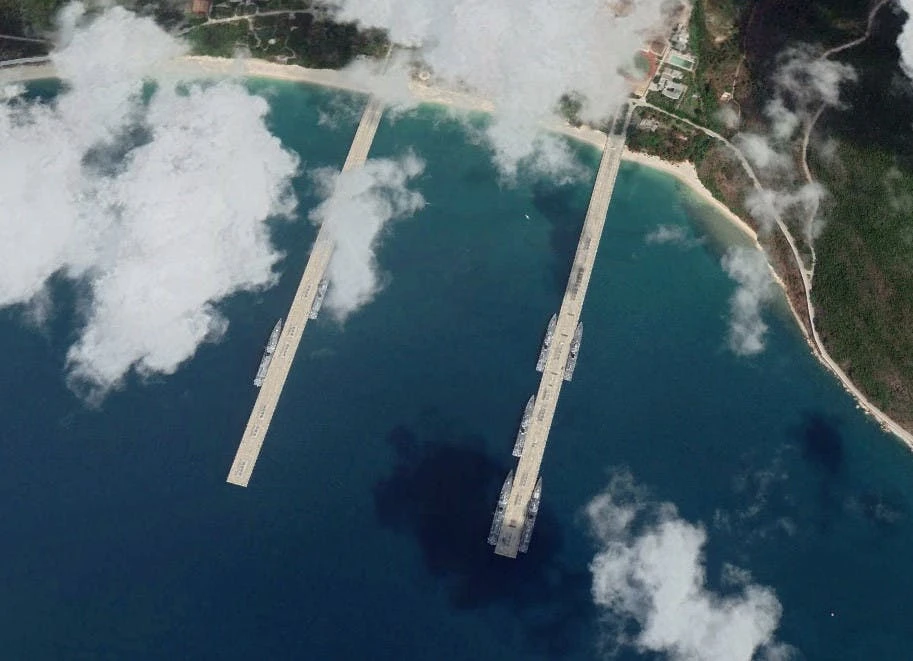Tàu chiến nổi của Hải quân Trung Quốc ở Du Lâm. Ảnh: GOOGLE EARTH