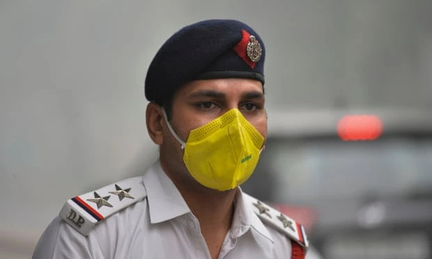 CSGT tại thủ đô New Delhi mang khẩu trang khi làm việc. Ảnh: The Guardian