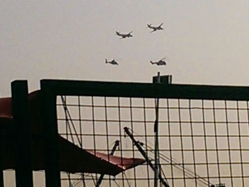 Tờ South China Morning Post đưa tin, sáng nay vào khoảng 7g30, một nhóm 2 máy bay và 2 trực thăng quân sự đã xuất hiện gần cảng Victoria của Hong Kong khiến cho người biểu tình có phần hoang mang. Hiện vẫn chưa có thông tin chính thức khẳng định sự xuất hiện của các máy bay này là nhằm mục đích gì.