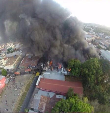 Reuters cho biết chiếc phi cơ rơi xuống bốc cháy, tạo nên các cột khói đen bốc lên từ khu chợ. Nguyên nhân vụ việc đang được điều tra làm rõ.