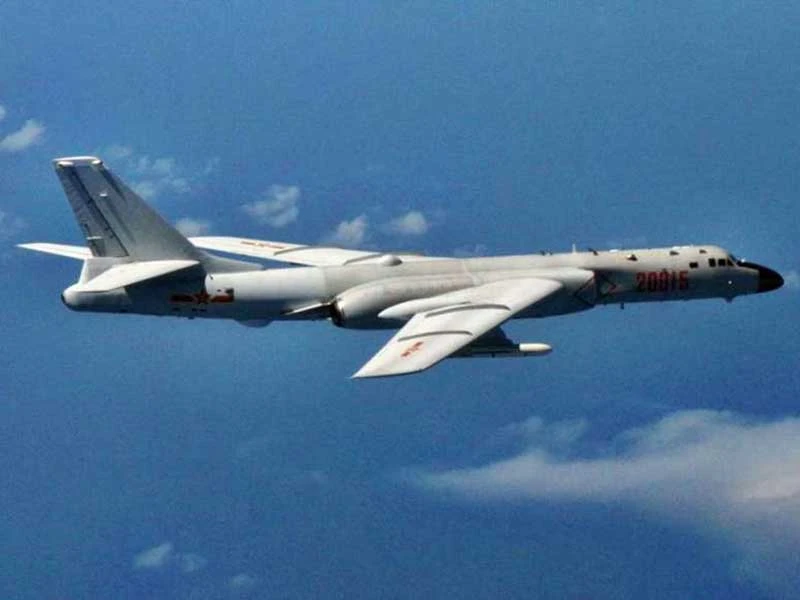 Máy bay ném bom H-6 trên vùng biển giữa tỉnh Okinawa và đảo Miyako của Nhật. Ảnh: BỘ QUỐC PHÒNG NHẬT