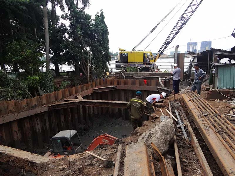 Ngoài yêu cầu chấn chỉnh việc thi công gây mất vệ sinh, mất an toàn giao thông, Trung tâm chống ngập TP còn yêu cầu chấn chỉnh các hạng mục thi công gây nguy hiểm. Cụ thể, theo xác định của Trung tâm chống ngập TP, khi thi công tường cừ và đào đất để lắp đặt hệ thống bơm đã xảy ra sạt lở nguy hiểm. “Hố đào có thể bị mất ổn định do hệ thống chống đỡ không đủ khả năng chịu lực hoặc do hiện tượng trượt sâu. Trường hợp này các công trình liền kề hố đào bị chuyển vị lớn và có thể ảnh hưởng đến an toàn công trình bờ kè sông Sài Gòn - vị trí sát khu biệt thự Sài Gòn Pearl” - đại diện Trung tâm chống ngập TP cho biết.