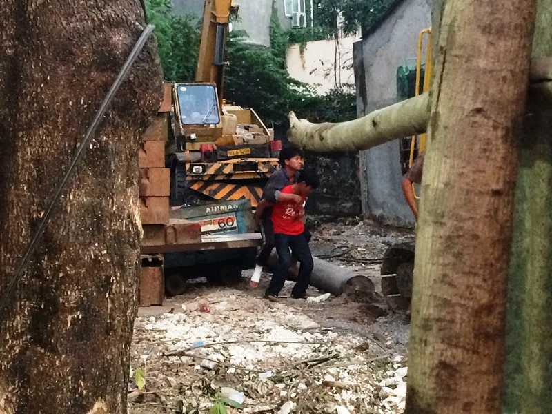 Thời điểm này, trong ngân hàng có khoảng 20 người bao gồm cả nhân viên, khách hàng đang làm việc. “Lúc đó nghe thấy một tiếng rầm rất lớn, tia lửa bắn ra, bê tông văng tung tóe nên tất cả mọi người đều bỏ chạy ra ngoài” – một nhân viên ngân hàng cho biết.