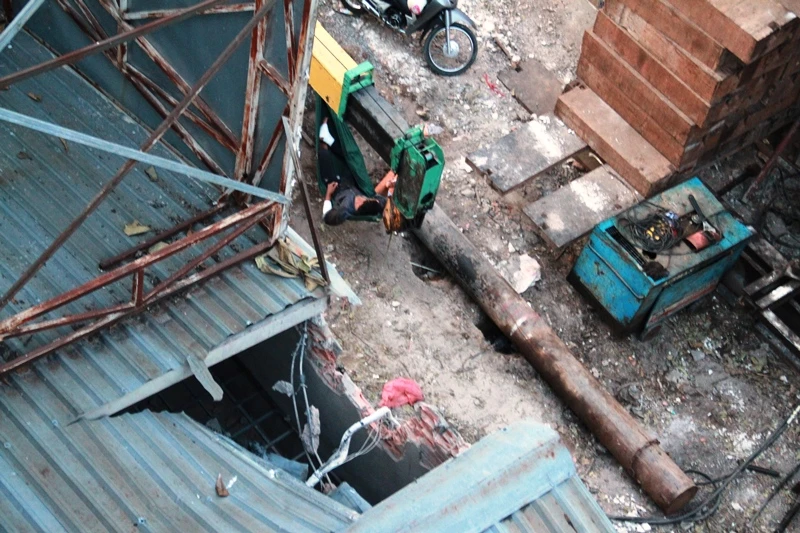 Sự cố cũng khiến một công nhân đang làm việc ở công trình dân sinh bị thương nhẹ, mắc kẹt và được những người khác giải cứu đưa đi bệnh viện băng bó. Một chiếc cần cẩu cũng được huy động đến để di chuyển chiếc máy ép cọc.