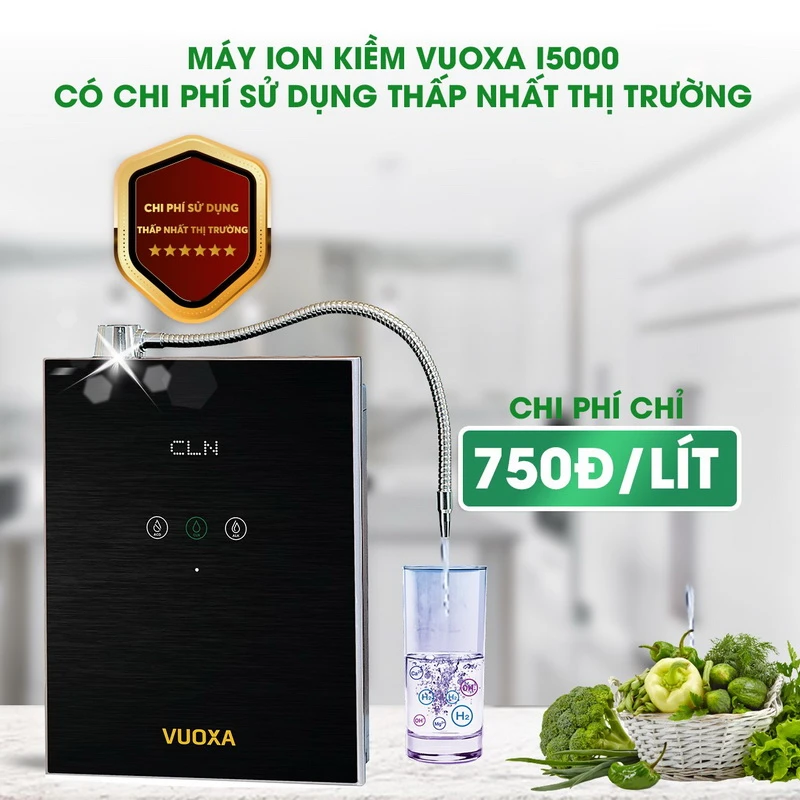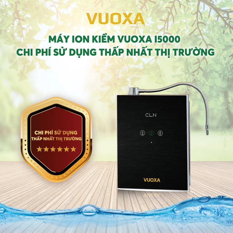 Do đó, thay vì sử dụng nước ion kiềm đóng chai chi phí là 4.000 đồng/lít thì việc sử dụng máy lọc nước ion kiềm Vuoxa i5000 sẽ mang đến nhiều lợi ích vượt trội. Nếu tính khấu hao máy 10 năm, chi phí thay lõi 10.000 lít/năm, tổng chi phí sử dụng trên 1 lít nước ion kiềm Vuoxa chỉ khoảng 750 đồng/lít. Hơn nữa, máy đầu tư một lần dùng được cả đời, giúp có nguồn nước ion kiềm tươi với nhiều chế độ nước, hàm lượng khoáng chất và hydro cao tốt cho sức khỏe.
