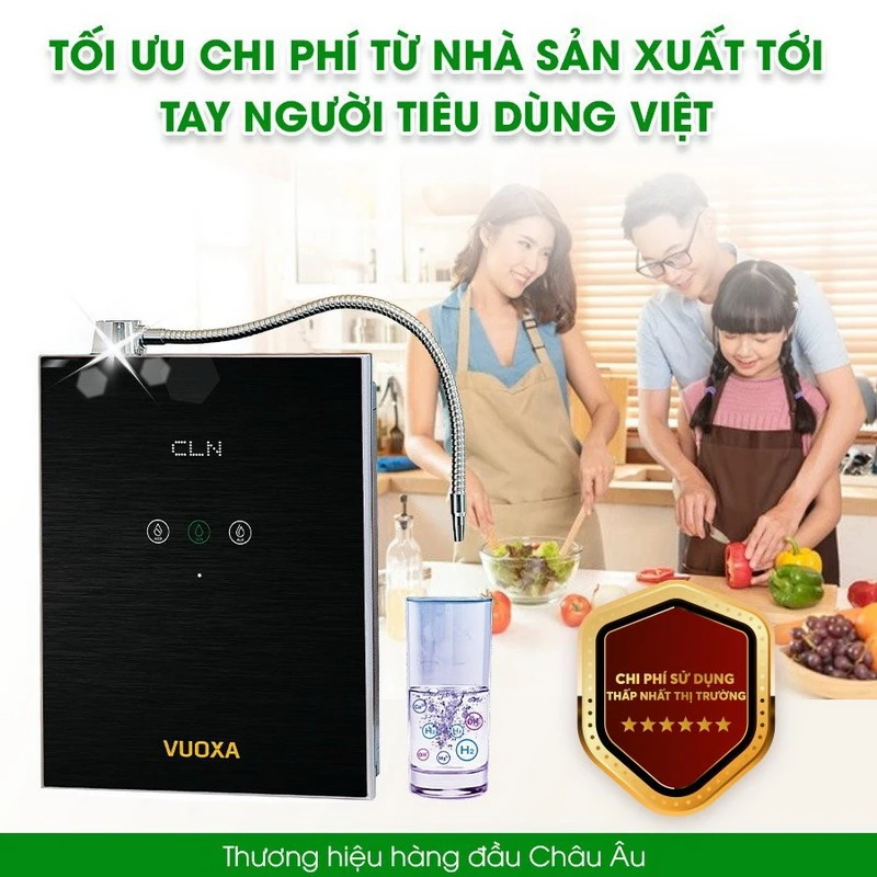 Bên cạnh đó, máy lọc nước ion kiềm Vuoxa i5000 được cắt giảm khâu phân phối trung gian cùng với sự trợ giá của nhà sản xuất, giúp tối ưu chi phí người tiêu dùng. Có thể nói đến thời điểm hiện tại chưa có thương hiệu máy ion kiềm nào làm được điều này. Chính vì vậy, sử dụng máy lọc nước ion kiềm với chi phí sử dụng thấp nhất thị trường là lựa chọn thông minh cho mỗi gia đình.