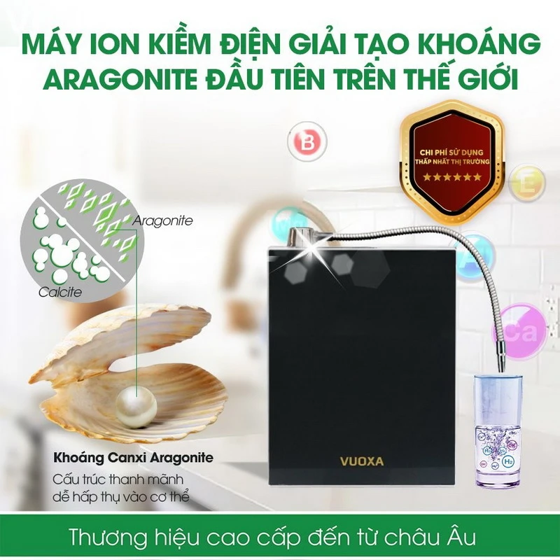 Máy lọc nước giàu hydro Vuoxa i5000, tạo khoáng Aragonite đầu tiên