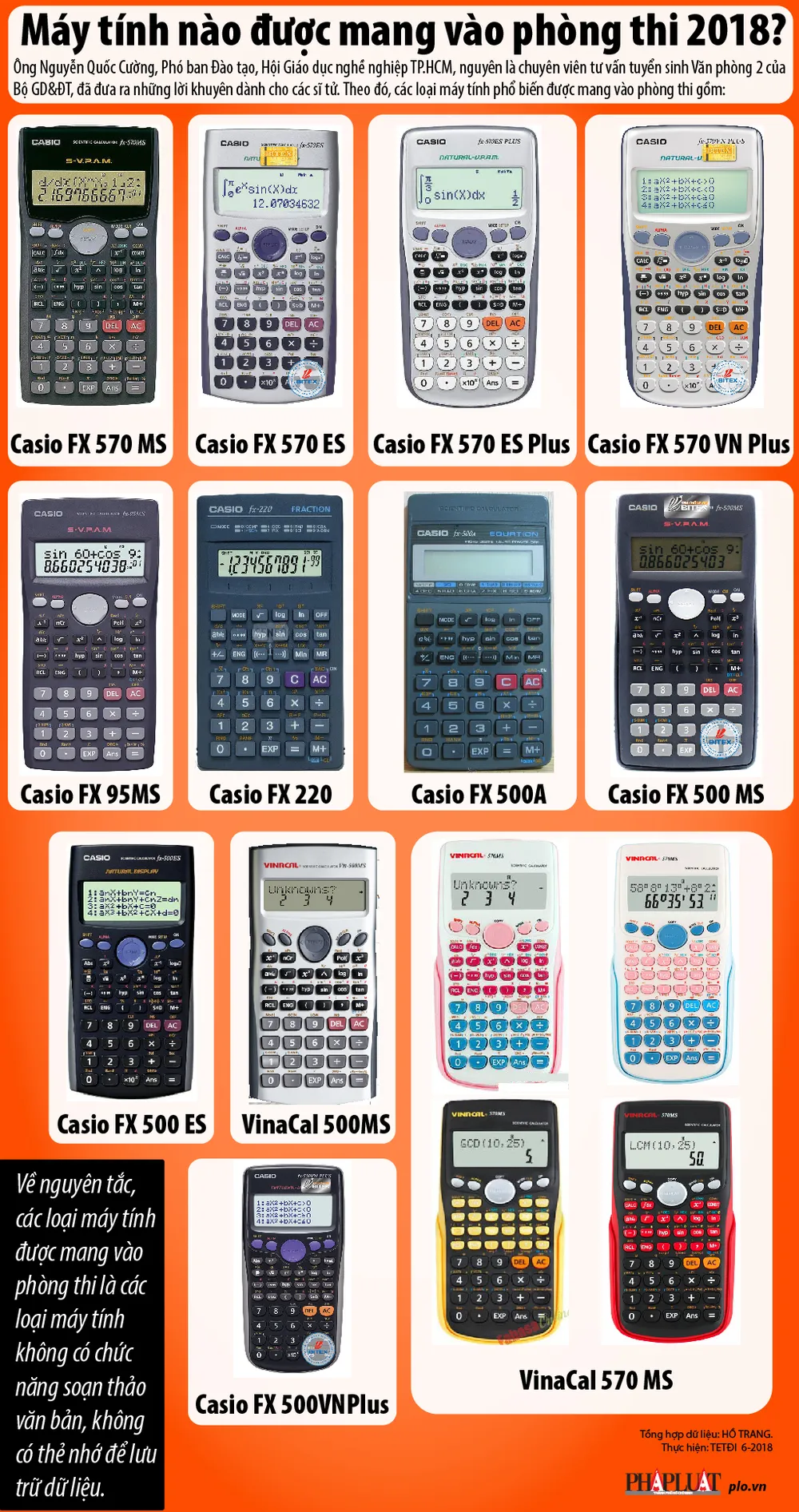 (PLO)- Ngày 25-6-2018, các thí sinh thi hai môn thi đầu tiên của kỳ thi THPT quốc gia 2018 gồm Ngữ văn và Toán. Theo lời khuyên của chuyên viên tư vấn, các loại máy tính phổ biến được mang vào phòng thi gồm: