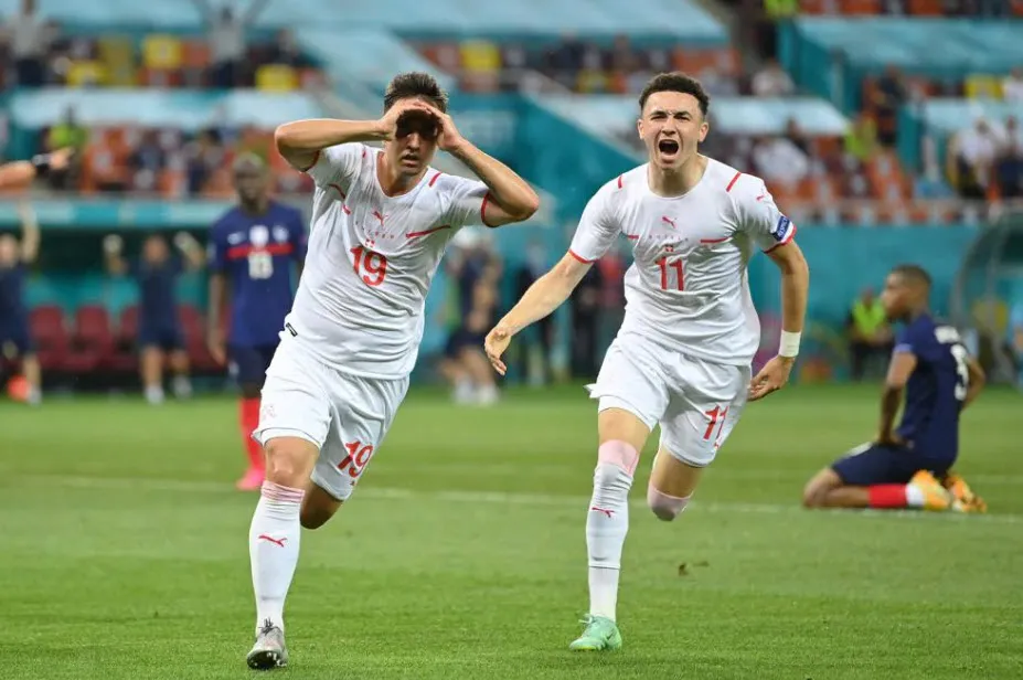 Xhaka chọc khe cho Gavranovic ngoặt bóng loại bỏ Kimpembe rồi tung cú dứt điểm quyết đoán vào góc lưới ghi bàn gỡ hòa 3-3 cho Thụy Sĩ trong sự bùng nỗ của 4 góc khán đài.