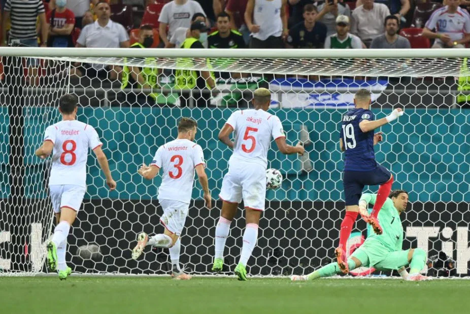 Chỉ hai phút sau pha Thụy Sĩ bỏ lỡ Penalty, một cầu thủ của họ lại mất bóng trên phần sân nhà để Pháp thực hiện pha phản công nhanh. Mbappe kiến tạo cho Bezema, dù lỡ trớn nhưng Benzema vẫn xử lý được đầy đẳng cấp trước khi chích bóng qua tay thủ môn Sommer trong thế đối mặt ghi bàn gỡ hòa 1-1 cho Pháp.