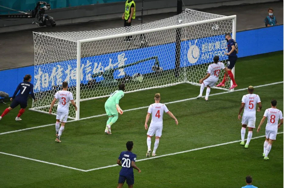Cũng chỉ 2 phút sau đó, lại là Benzema đánh đầu cận thành ghi bàn dễ nhất sự nghiệp sau khi Griezmann dứt điểm bị Sommer đẩy ra. 2-1 cho Pháp. Thế trận xoay chiều theo cách chóng mặt và không thể tin nổi.