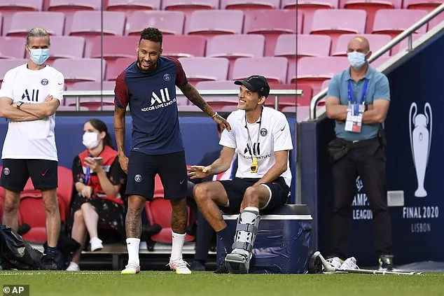 HLV Tuchel và Neymar cũng tươi cười trao đổi với nhau. ẢNH: AP