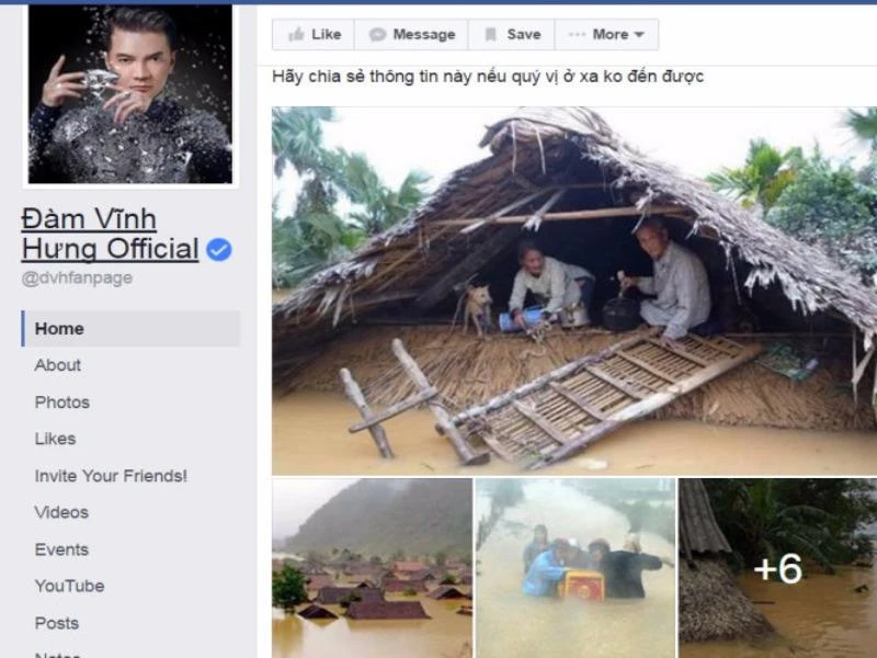 Đàm Vĩnh Hưng chia sẻ hình ảnh vùng lũ để kêu gọi khán giả quyên góp trên trang mạng xã hội - Ảnh TTO