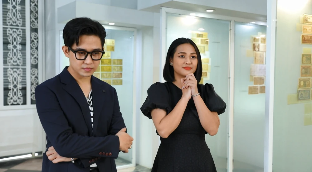 Tại phòng trưng bày Tiền Việt Nam, MC Quốc Bảo và Trà Ngọc được chị Nhung – hướng dẫn viên giới thiệu về các loại tiền tệ của Việt Nam qua các thời đại và công dụng của những loại tiền này.
