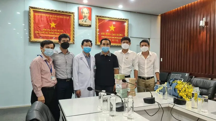 Trước đó, hôm 26-5 MC Quyền Linh (áo đen) cũng đã đến Bệnh viện Chợ Rẫy ủng hộ 2 tỉ động cho tỉnh Bắc Giang và Bệnh viện K Hà Nội phòng chống COVID-19. Ảnh FBNV.