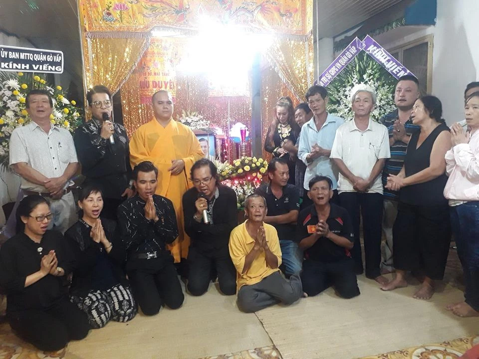 Quan tài ông được gia đình cho phép để tại chùa từ 15g-23g ngày 22-6, sau đó lại chuyển về tư gia. Vậy nên trong chiều, tối ngày 22-6, rất nhiều nghệ sĩ đã gắn bó với ông trong công tác từ thiện nhiều năm qua như Thanh Bạch, Phú Quý, Vương Cảnh, Trọng Linh, Ngọc Huệ, Trúc Linh…, đã đến.