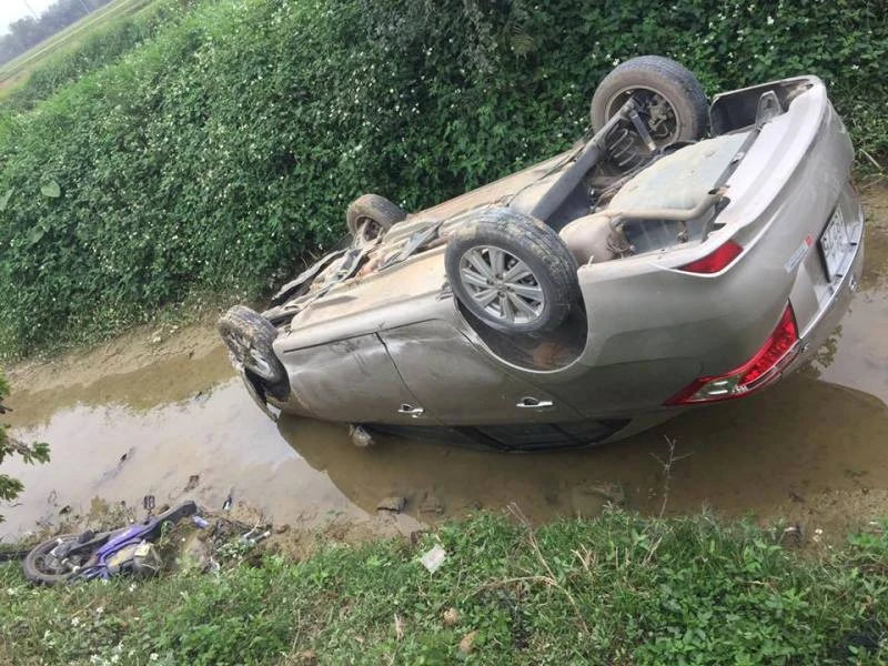 Như đã đưa tin, gần trưa mùng 5 Tết Mậu Tuất, chị Chung đi xe đạp điện ra đồng. Lúc này, ô tô Toyota Vios 37A-182.xx chạy trên quốc lộ 46 hướng thị trấn Nam Đàn (huyện Nam Đàn) - TP Vinh (Nghệ An) bất ngờ đâm gãy cột mốc bên cột điện, lao vào xe chị Chung, tông gãy cây bên đường trước khi lật ngửa ở mương thoát nước.