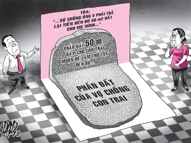 Về trách nhiệm của người con dâu, dù không thừa nhận có ký vào giấy cam kết và thỏa thuận nhưng không có chứng cứ chứng minh. Căn cứ vào thực tế, người thụ hưởng khoản tiền bồi thường đối với 50 m2 đất là vợ chồng ông V. Sau đó vợ chồng bị đơn dùng khoản tiền này mua đất tái định cư của Nhà nước và hiện sở hữu chung đối với quyền sử dụng đất.