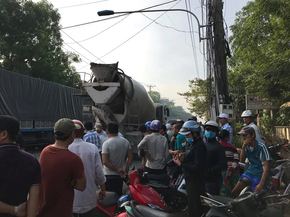 Sáng cùng ngày, xe bồn 60C-283.21 chạy trên đường D1 (thị xã Dĩ An, Bình Dương). Khi tới đoạn thuộc phường Tân Đông Hiệp thì va chạm với một xe máy do người phụ nữ tên H. (28 tuổi, ngụ thị xã Dĩ An) lái cùng chiều chở theo sau con gái sáu tuổi đi học.