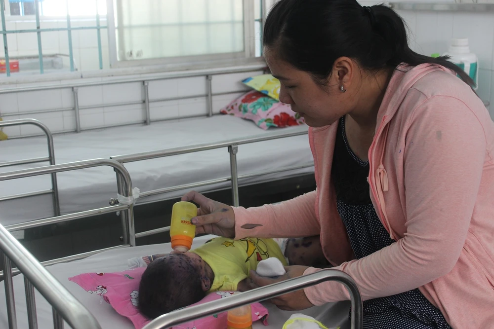 Trong đó, bệnh nhi nhỏ tuổi nhất là bé PNM (16 ngày tuổi). Bà ngoại đang chăm sóc bé M. tại bệnh viện cho biết bé nhập viện khi chỉ mới 12 ngày tuổi. Trước đó, mẹ bé M. phát bệnh khi chỉ còn bốn ngày nữa là hạ sinh bé.