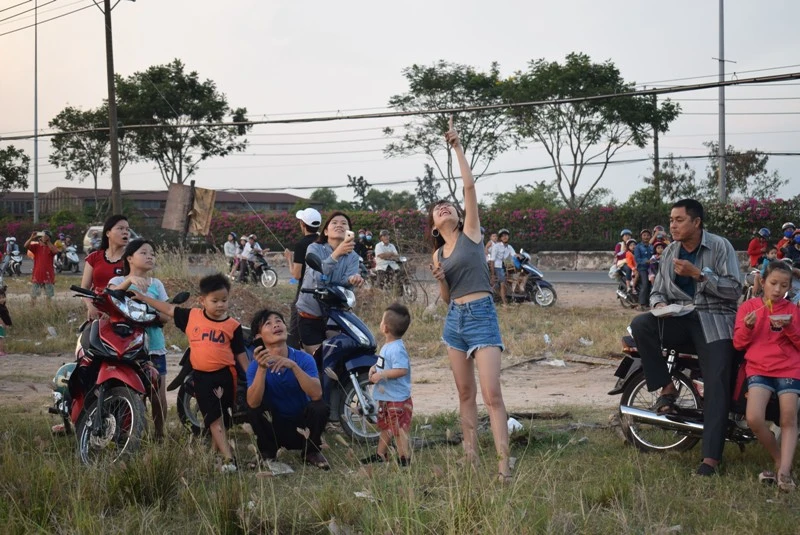 Không chỉ có các em nhỏ mà người lớn cũng đua nhau xem diều của ai bay cao và bay xa nhất.