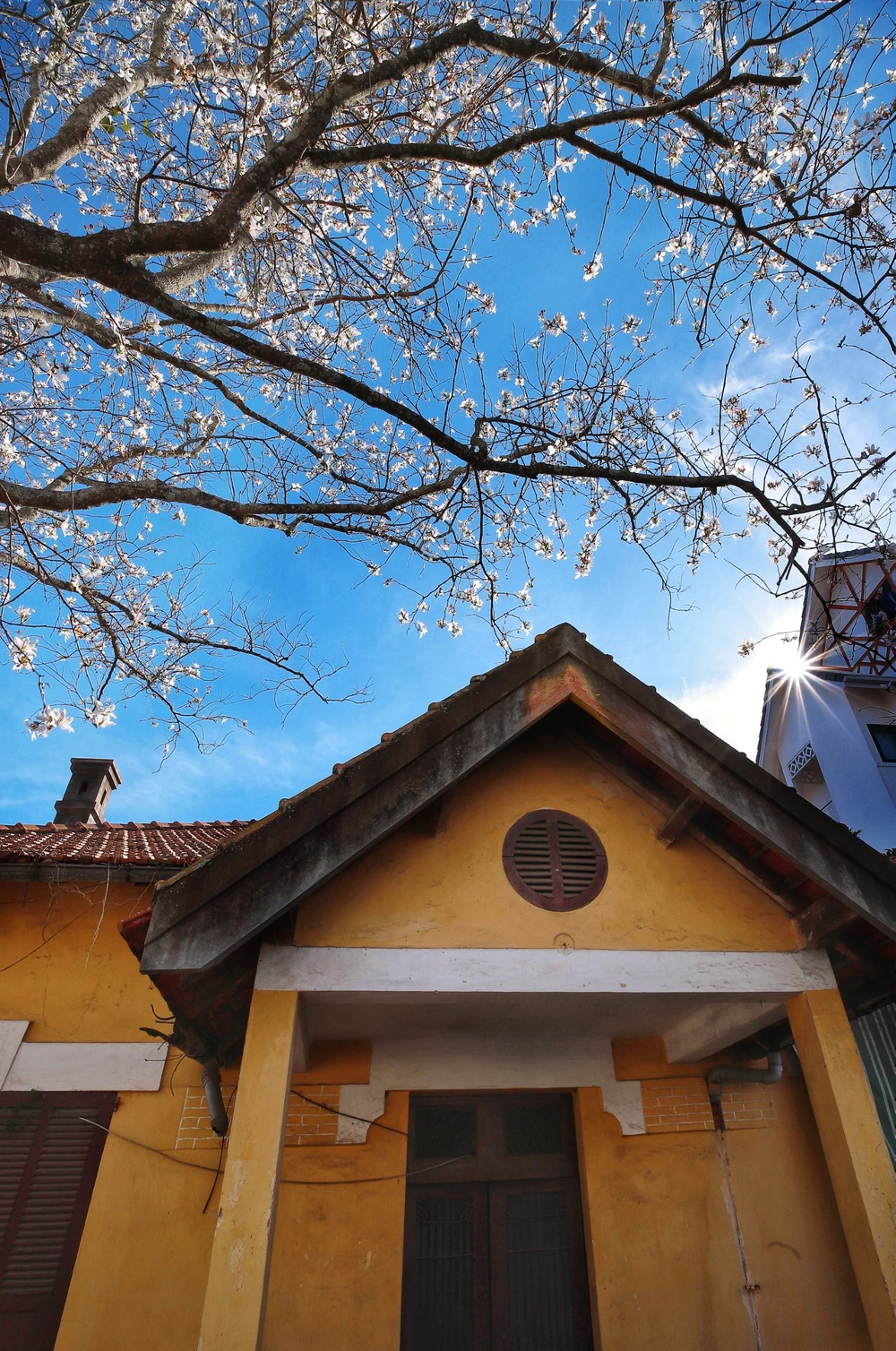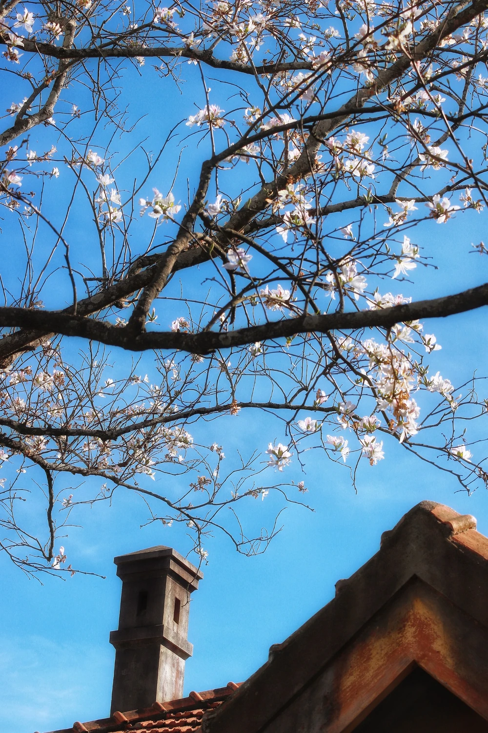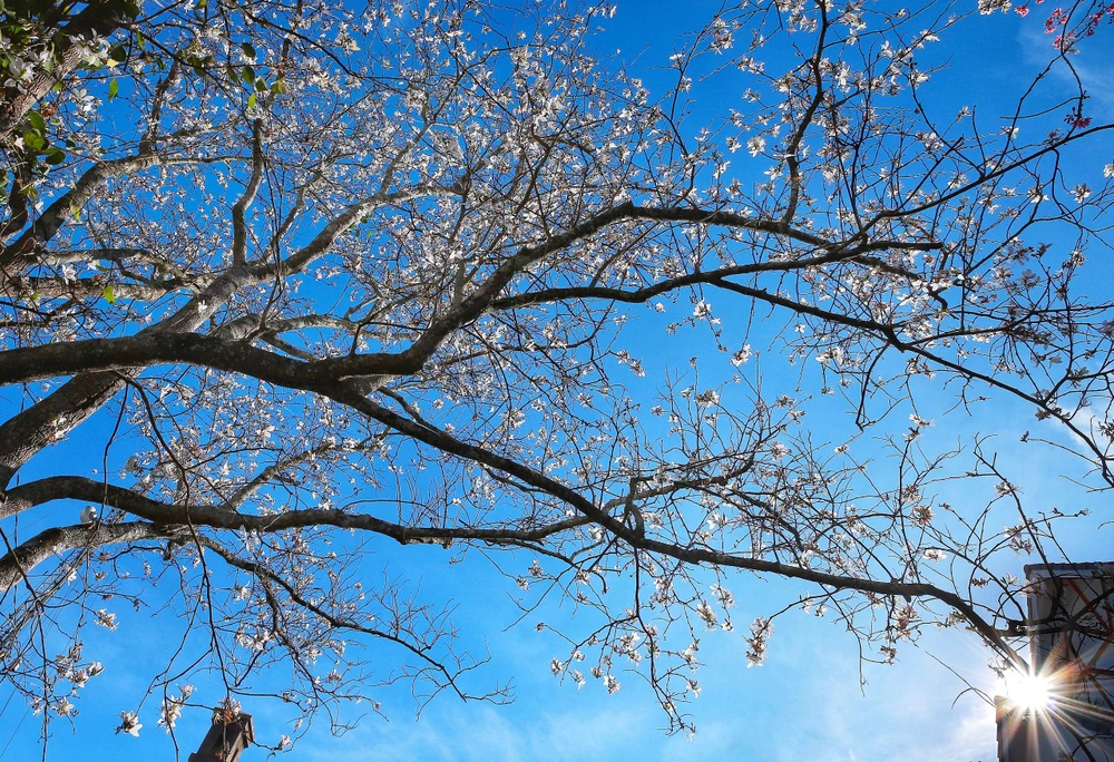 Hoa ban trắng cao, phủ nhiều mái nhà trên đường Trần Phú, Quang Trung.