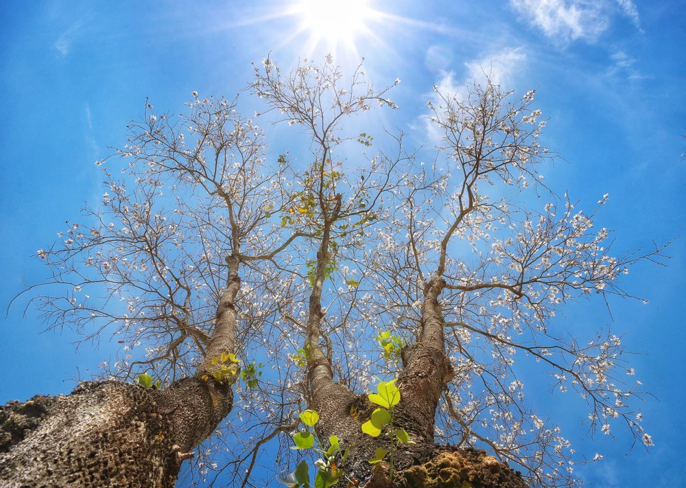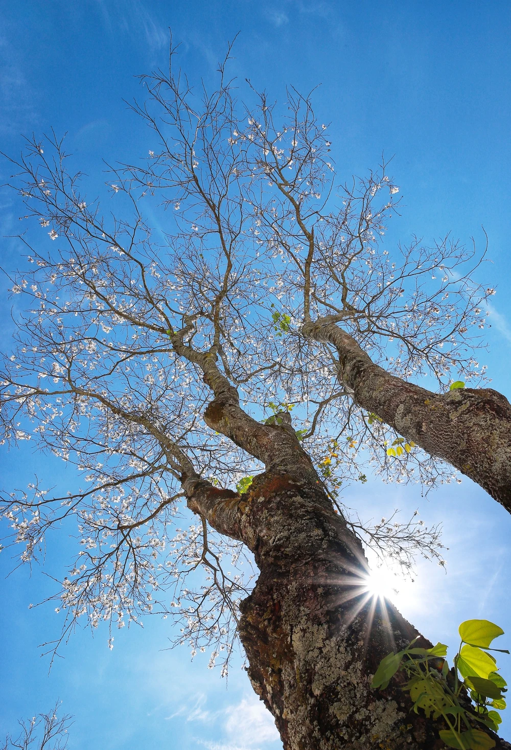 Những cánh hoa trắng như tuyết nổi bật giữa nền trời xanh ngắt.