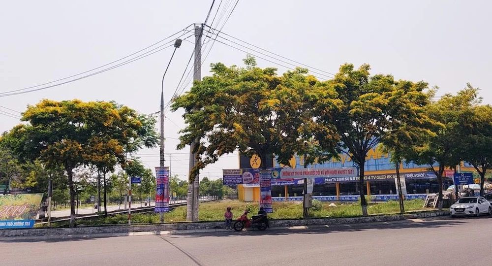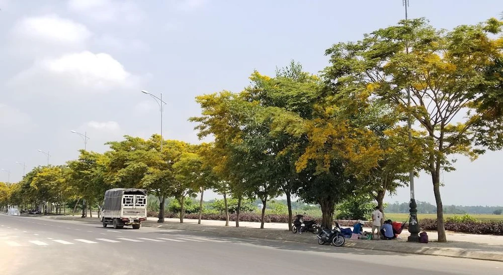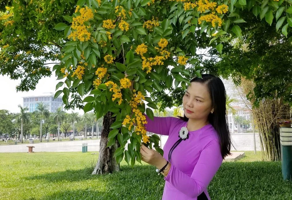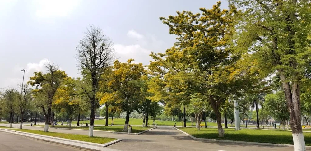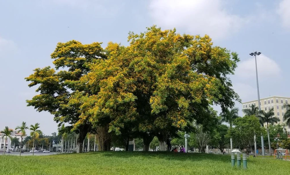 Những cây sưa vàng giữa quảng trường 24-3 tạo nên vẻ đẹp đặc trưng của TP Tam Kỳ. Ảnh: THANH NHẬT