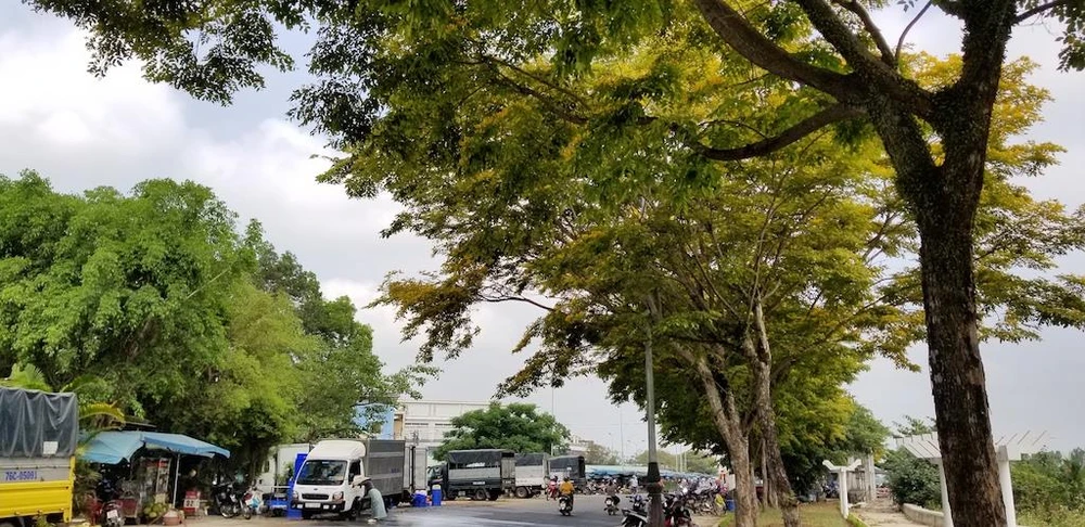 Hoa sưa tô đẹp một góc chợ Tam Kỳ. Ảnh: THANH NHẬT